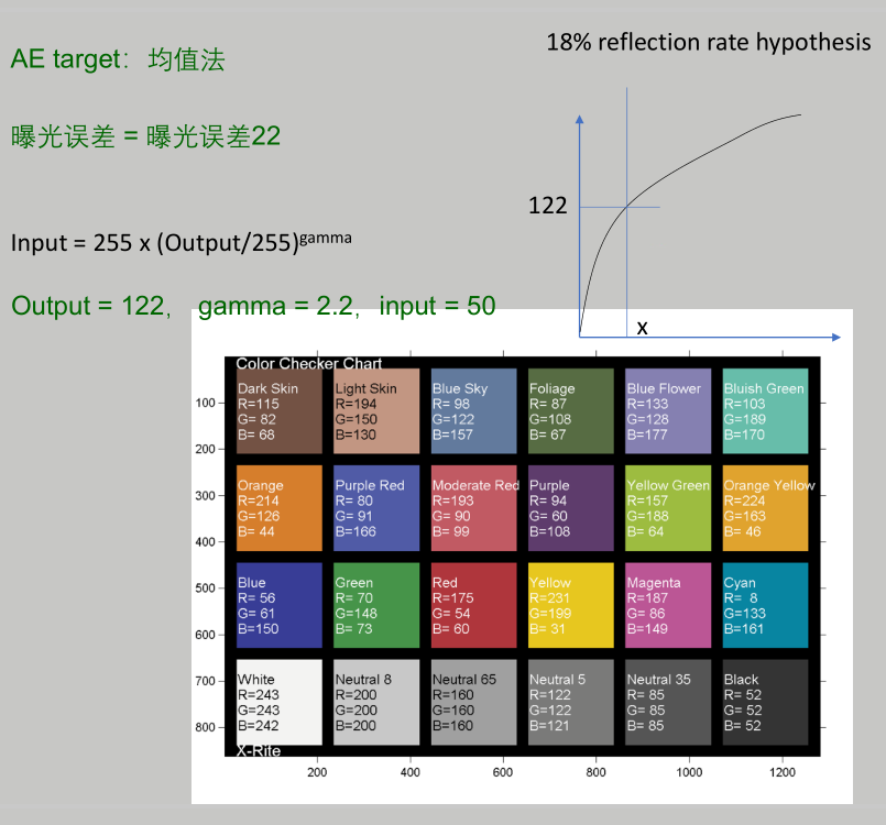因为在AE后面要进行gamma操作,所以要将24色块的rgb值转换到gamma前的操作,如下: