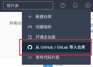 如果你有Gitee账号,可以直接在Gitee右上角,选择从Github / GitLab 导入仓库