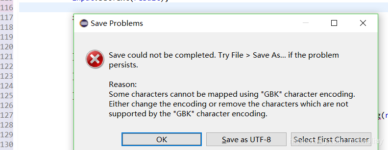 原因及解决:eclipse正使用的字符集GBK,不能支持所有代码的映射,需要删掉不符合和字符或者换个字符集……所以还是比较推荐后者:Projext->Properties->Resourse->others改为支持的相应字符集 bingo~