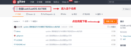 首先要下载Air780的LuatOS示例代码到一个合适的项目目录,示例代码网站: