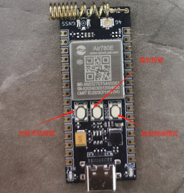 2、当我们模块开机时,按着BOOT键然后点按重启键即可.