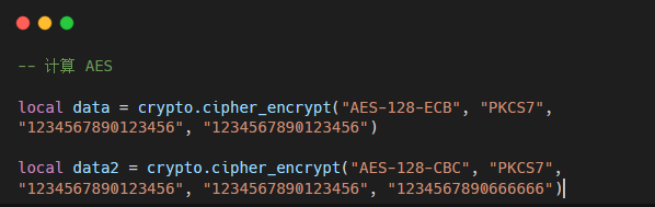 5.13 crypto.cipher_encrypt(type,padding,str,key,iv)