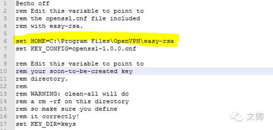 使用easy-rsa生成OpenVPN的配置文件,在github上面,easy-rsa(https://github.com/OpenVPN/easy-rsa)已经更新到了3.0 版本,但是3.0 的改动比较大,但是在OpenVPN中依旧使用的是2.0,下载地址(http://pan.baidu.com/s/1slu20bj),然后就可以生成对应的证书文件了。然后将客户端或者服务器的对应文件放到/etc/openvpn文件夹中。在Windows下面安装的OpenVPN已经带有组件easy-rsa组件,因此可直接在Windows下面生成证书、客户端配置文件和服务器端配置文件,首先修改easy-rsa 中的var.bat.sample