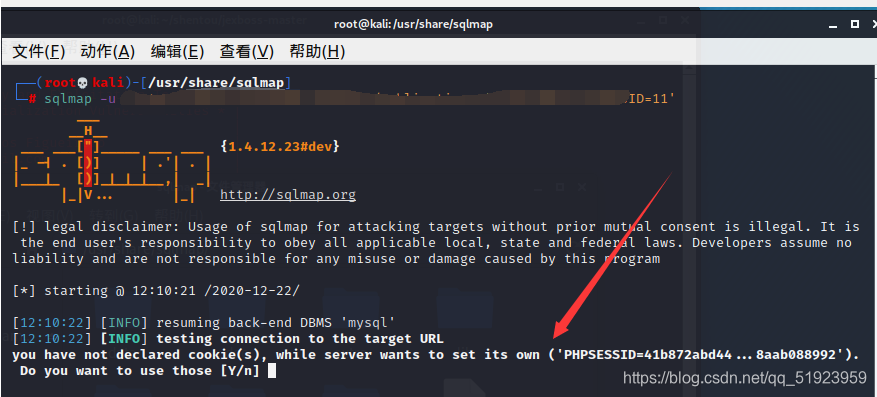 此处注意一下,有些网站用sqlmap跑是不需要cookie的,所以这个看个人习惯,如果你比较勤快,可以一开始把cookie就加在后面。