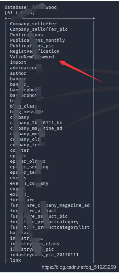 扫出61个表名,有用的应该是带password的,获取其字段列表。