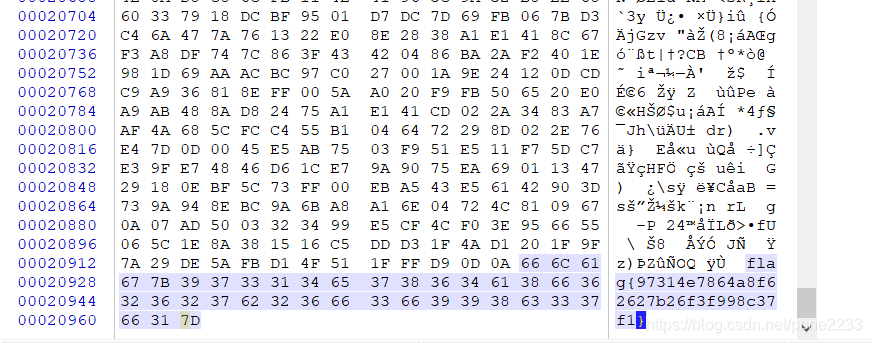 flag{97314e7864a8f62627b26f3f998c37f1}老规矩winhex,一看就有了