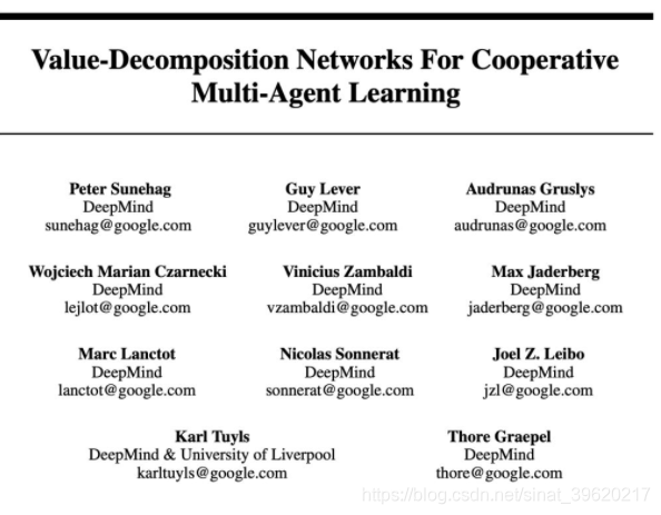 3.1.1论文标题:Value-Decomposition Networks For Cooperative Multi-Agent Learning