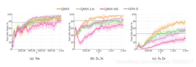 另外,我们注意到,每个时刻的全局状态作为 mixing network 的额外输入,这个出发点与 VDN 一样,即每个智能体只依赖于局部观察可能无法准确估计其局部 Q 函数,在 VDN 中通过低层或者高层通信来引入全局信息,而 QMIX 中则更加直接。
