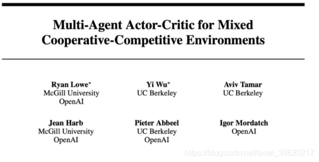 3.2.1论文标题:Multi-Agent Actor-Critic for Mixed Cooperative-Competitive Environments