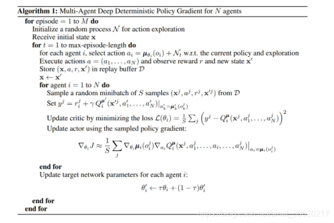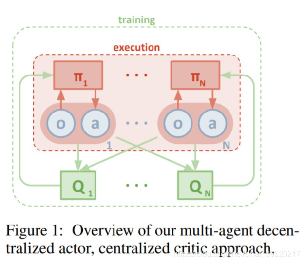 MADDPG 算法框架如下图所示(图片来源原论文):
