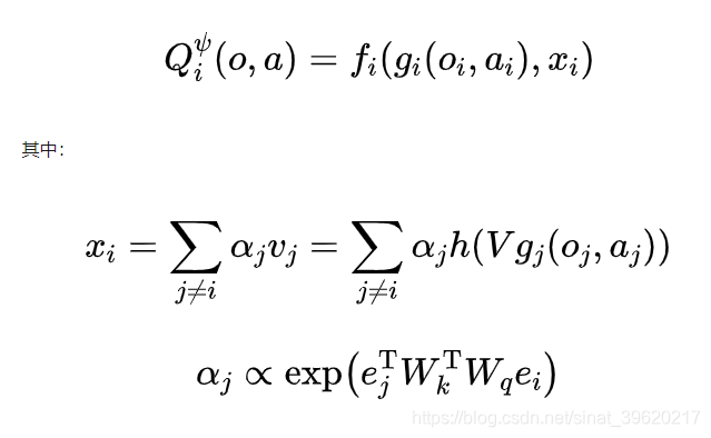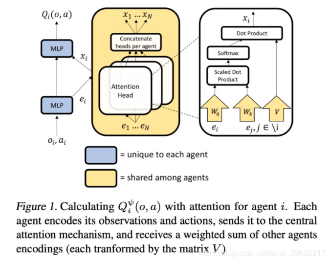 为此,MAAC 算法将注意力机制引入到 Q function 的构建之中,具体来说,每个智能体的 Q-function 网络结构如下(图片来源原论文):