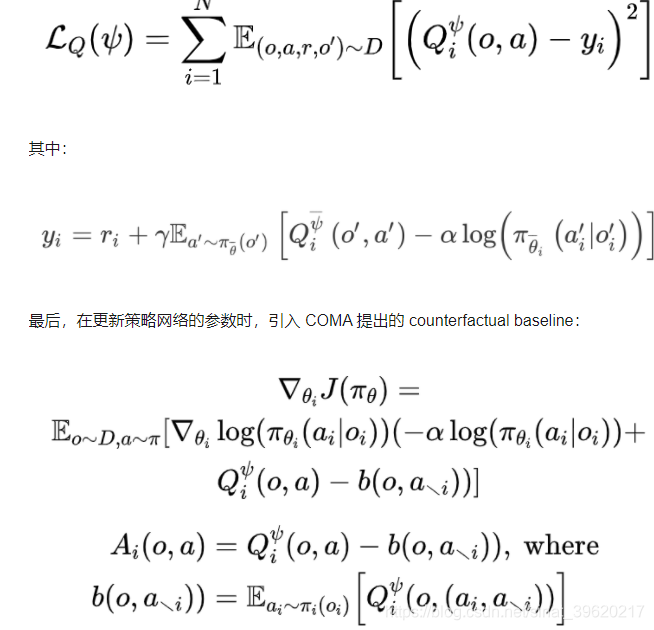 本文注意力机制采用的是多头注意力机制。由于在每个智能体的 Q function 中存在共享参数,因而优化目标与 MADDPG 不同: