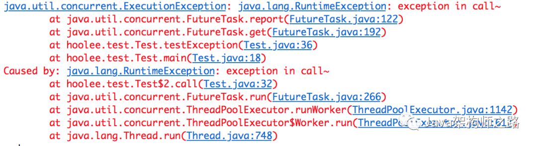 throw new RuntimeException("exception in call~");// 该异常会在调用Future.get()时传递给调用者