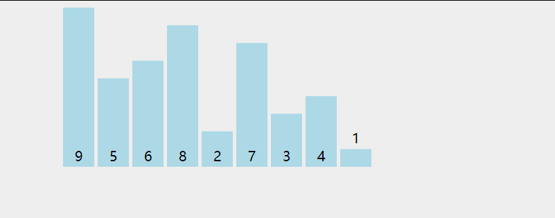 除去最右的元素,我们对剩余的元素做同样的工作,如此重复下去,直到排序完成。