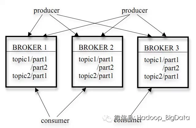 (3)显式分布式,即所有的producer、broker和consumer都会有多个,均为分布式的。