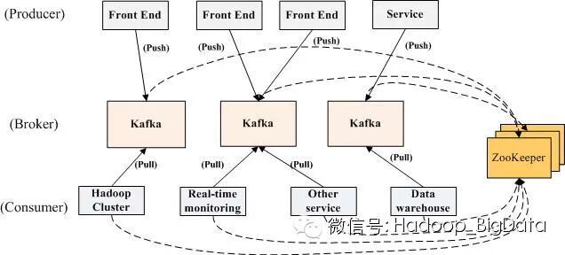 Producer 向Kafka(push)推数据,consumer 从kafka 拉(pull)数据。