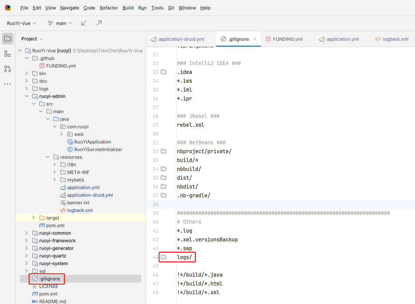 - 添加 git 忽略文件,忽略掉我们的日志不提交到远程仓库当中