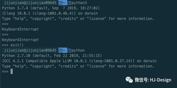 #!/usr/bin/env python3 print("Hello H和J的博客") 输出 /usr/local/bin/python3.7 /Users/jijunjian/learn/mypython/src/HelloWorld.py Hello H和J的博客