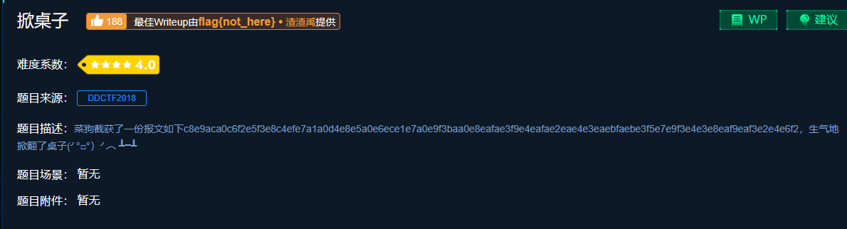 就给了一串16进制的字符串。哎,又是不懂,看了一下官方WP,说是将每两位16进制数转换为10进制,再减去128再转换为ASCII码。直接上脚本
