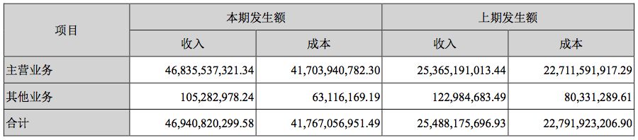 营业收入与营收成本: