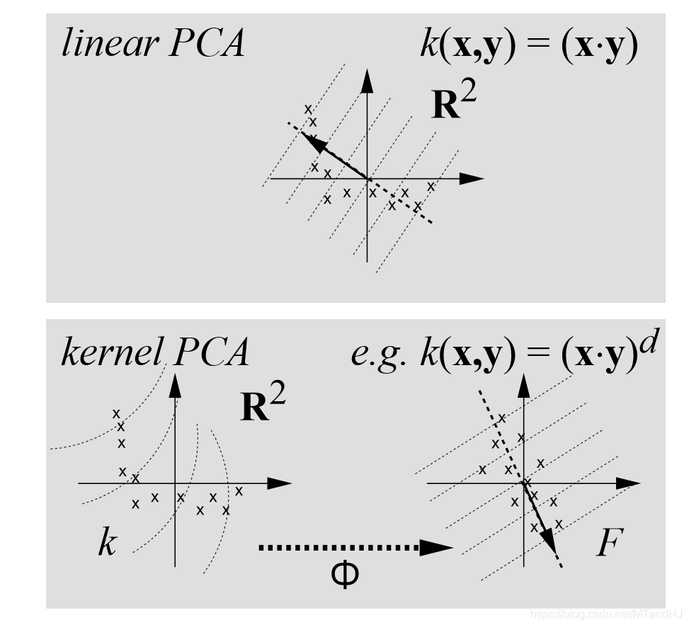 而kernel PCA试图通过一个非线性函数:
