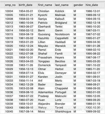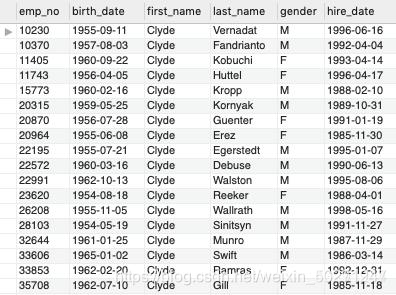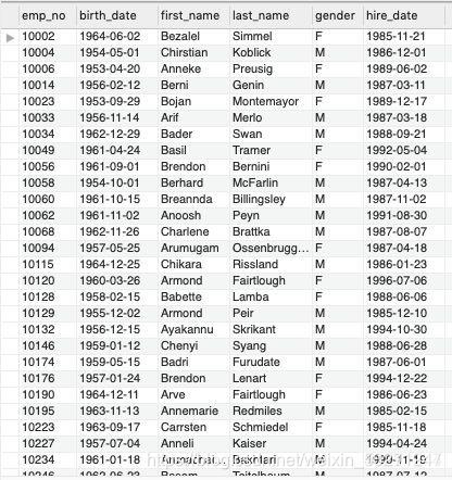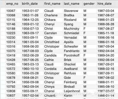 - BETWEEN AND-查询employees中字母顺序显示名字在“Anneke”(包括)和“Chirstian”(包括)的人