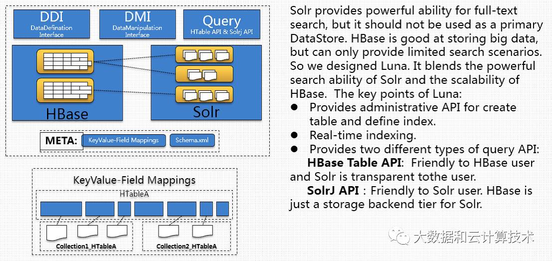 可以使用HBASE/Solr的LUNA接口,就不用自己管理两者。