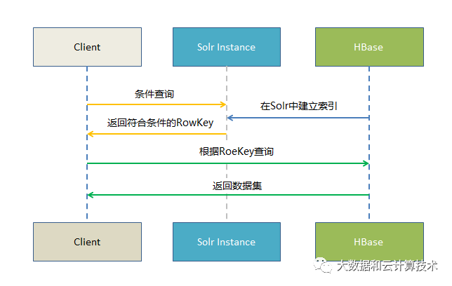 基于Solr的HBase多条件查询原理很简单,将HBase表中涉及条件过滤的字段和rowkey在Solr中建立索引,通过Solr的多条件查询快速获得符合过滤条件的rowkey值,拿到这些rowkey之后在HBASE中通过指定rowkey进行查询。