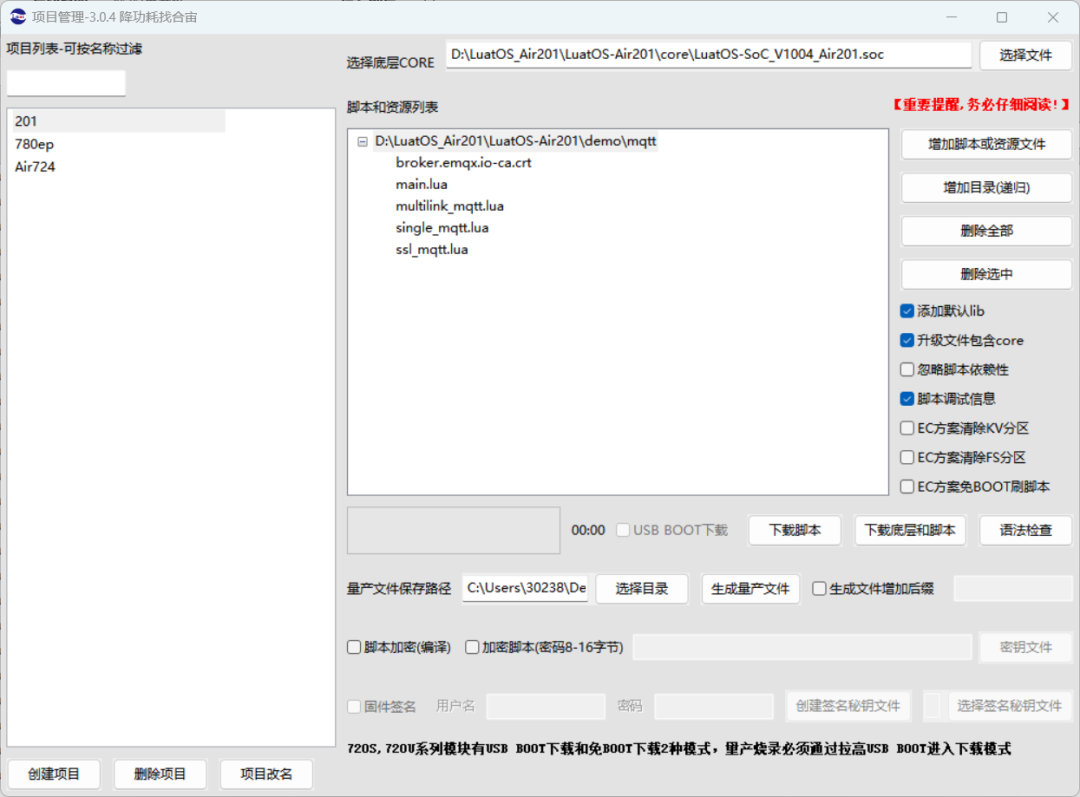 本章所需要用到的脚本存于LuatOS-Air201\demo\mqtt文件夹中;若没有找到该脚本,可能代码并非最新,请根据前面教学重新拉取。