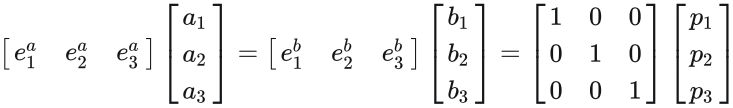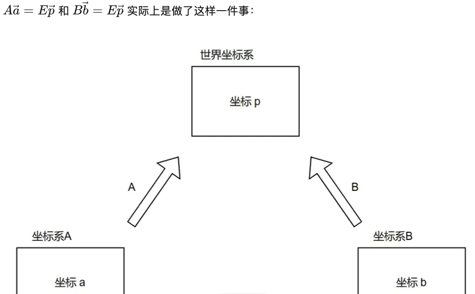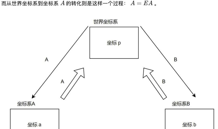将 坐标系A上的坐标a 与 坐标系B上的坐标b 转化为 世界坐标系上的坐标p :