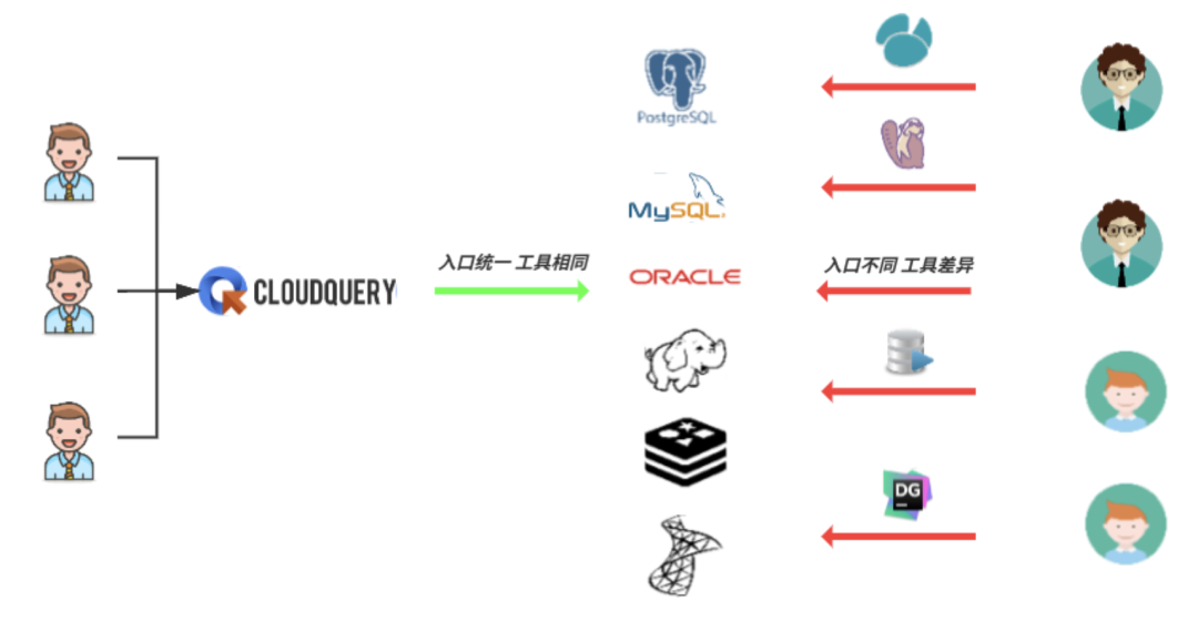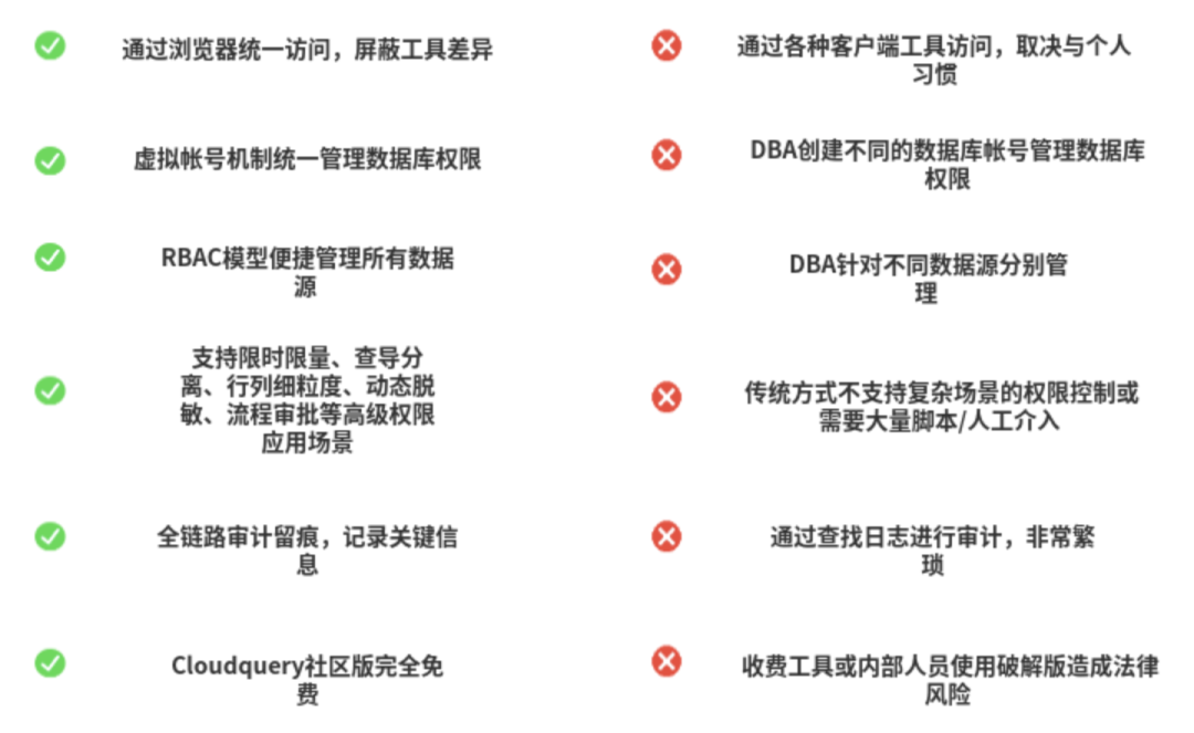 使用 CloudQuery 管理数据库与传统方式管理数据库的区别: