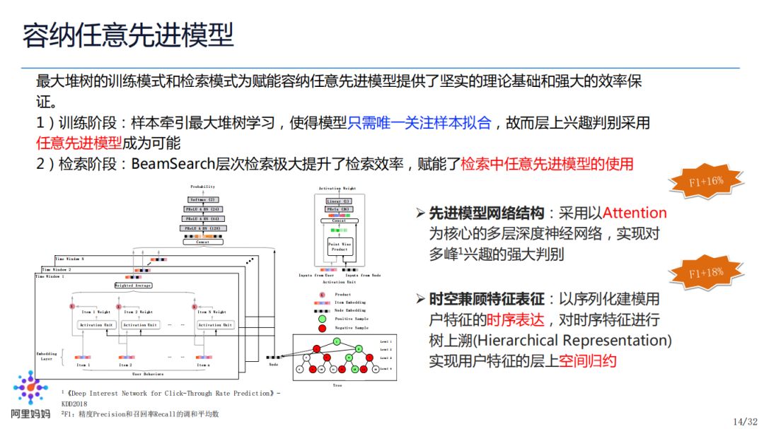 时空兼顾特征表征:以序列化建模用户特征的时序表达,对时序特征进行树上溯(Hierarchical Representation)实现用户特征的层上空间归约,F1 又提升了18%。