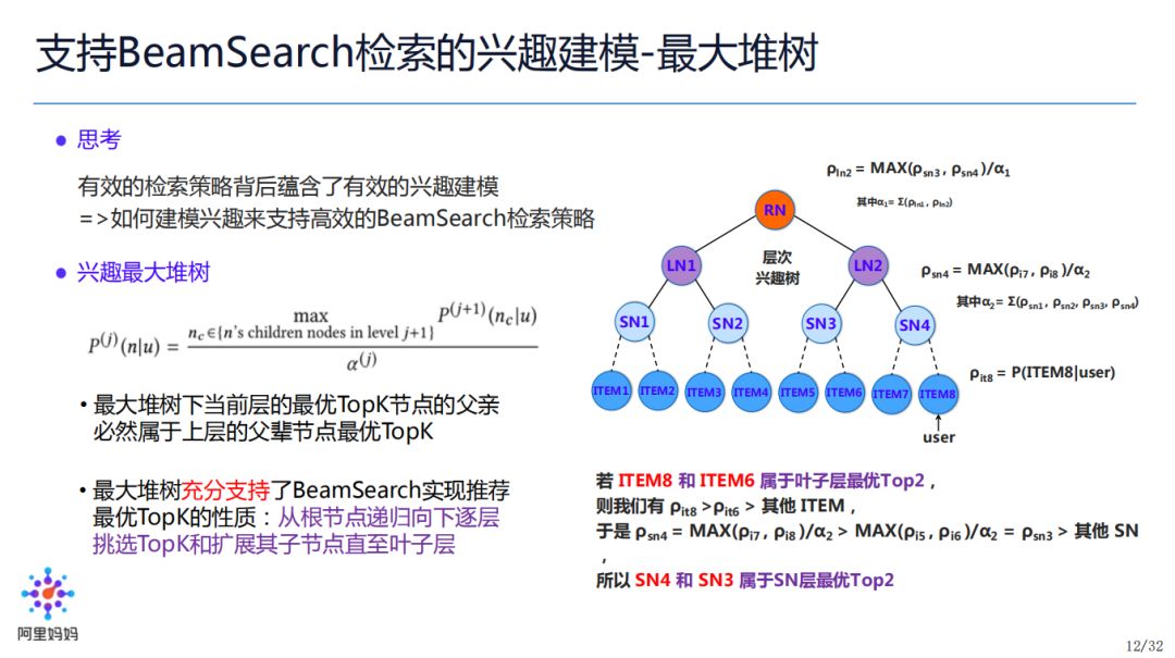 以右图举例:如果 Item8 和 Item6 是叶子层最优 Top2,那么根据我们之前的描述,SN4 和 SN3 是 SN 层的最优 Top2。