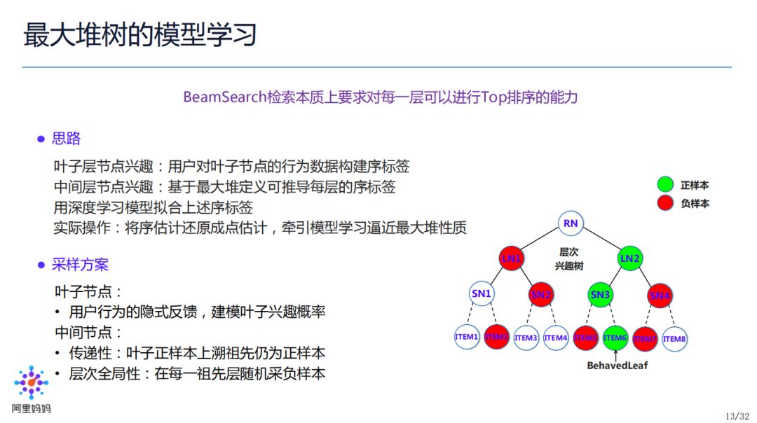 我们如何学习最大堆树的模型?BeamSearch 检索本质上要求具备对每一层进行 TopK 排序的能力。我们的做法是:构建符合这样性质的样本,让样本牵引模型学习,去逼近最大堆。