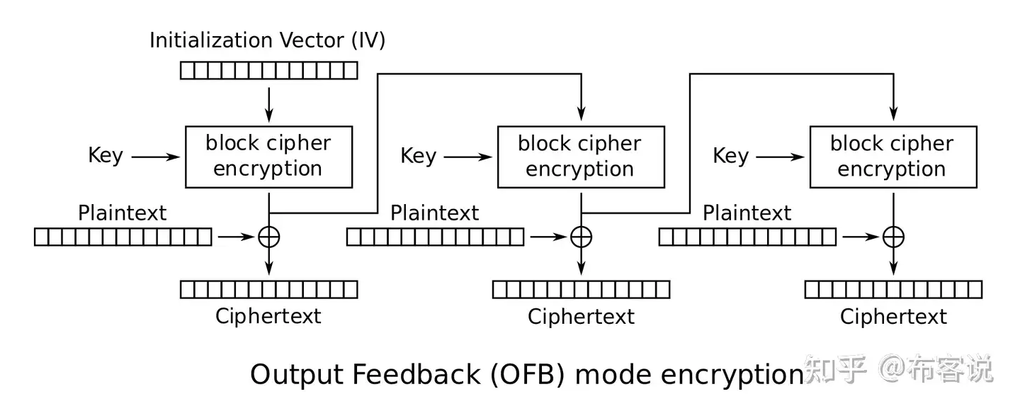 - 输出反馈:Output Feedback Mode (OFB)