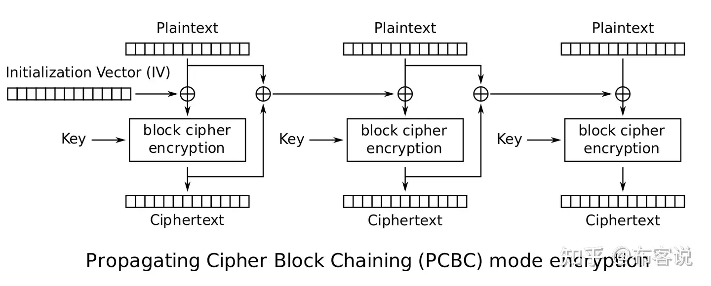 - 填充密码分组链接:Propagating Cipher Block Chaining Mode(PCBC)
