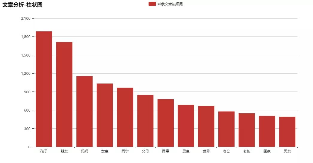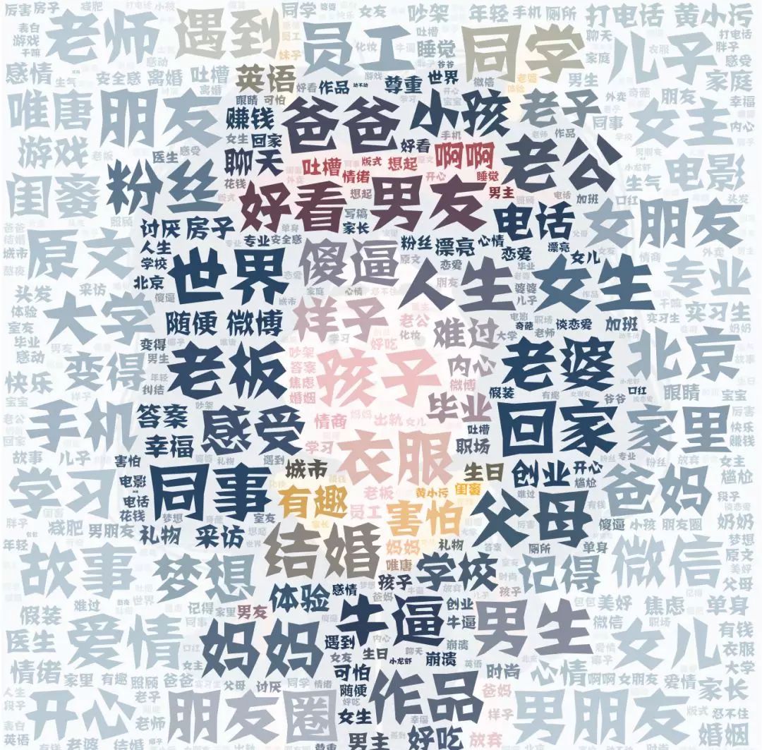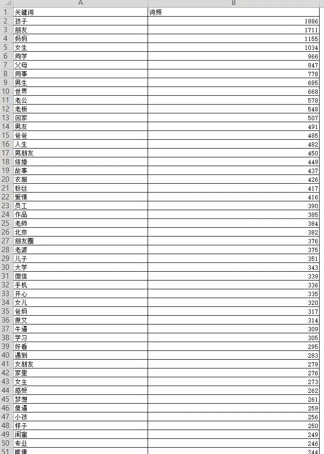 文章中大部分从孩子、父母、男生、女生、闺蜜等话题展开。另外之所以朋友这个词出现在前面,因为很多文章都是讲述"朋友"的故事。