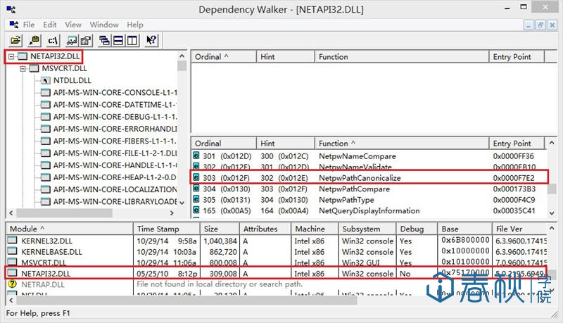 在该动态链接库中有一个名为NetpwPathCanonicalize()的导出函数: