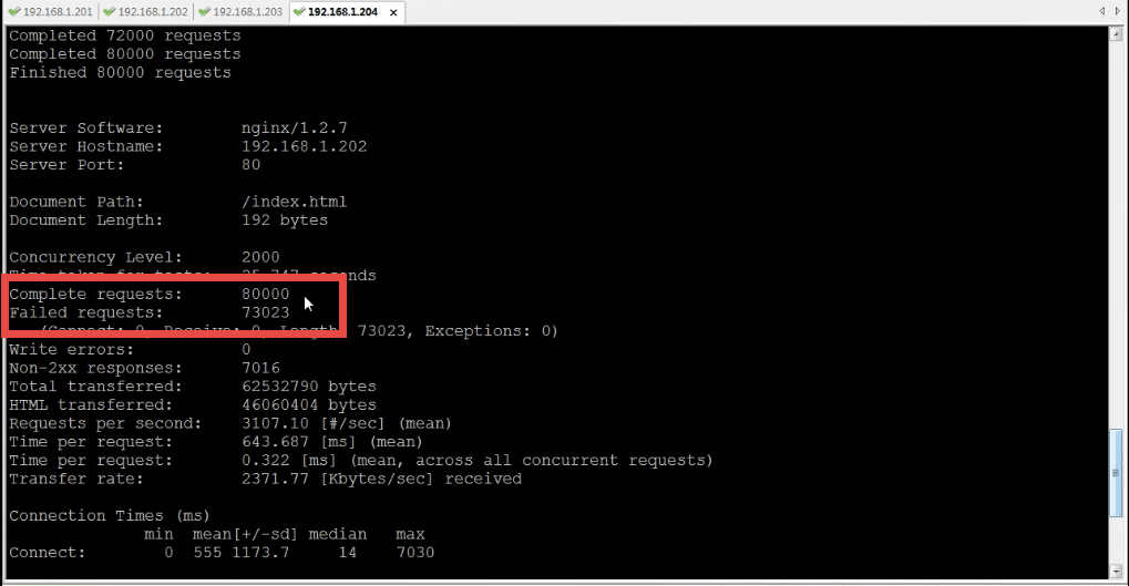 ./bin/ab -c 2000 -n 80000 http://192.168.1.202/index.html