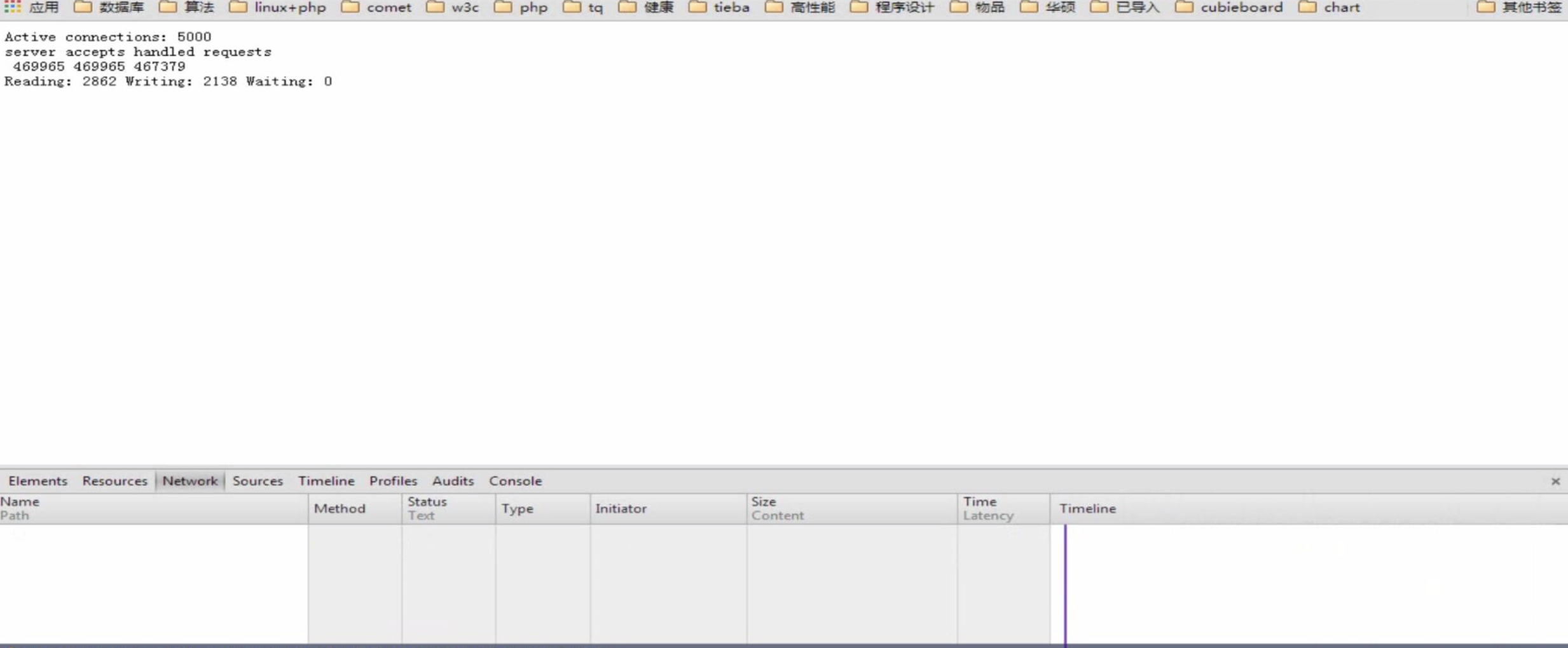 通过页面status发现是2000左右并发,因为ab客户端也需要设置最大连接数,nginx端没什么问题,已经配置过了,可是ab客户端没有设置,可累坏了,客户端没有那么强。