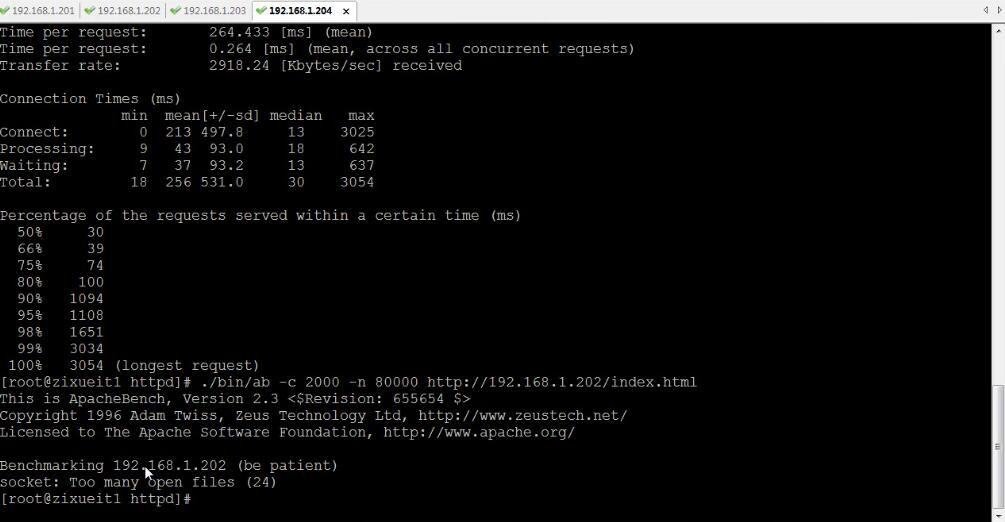 ./bin/ab -c 2000 -n 80000 http://192.168.1.202/index.html