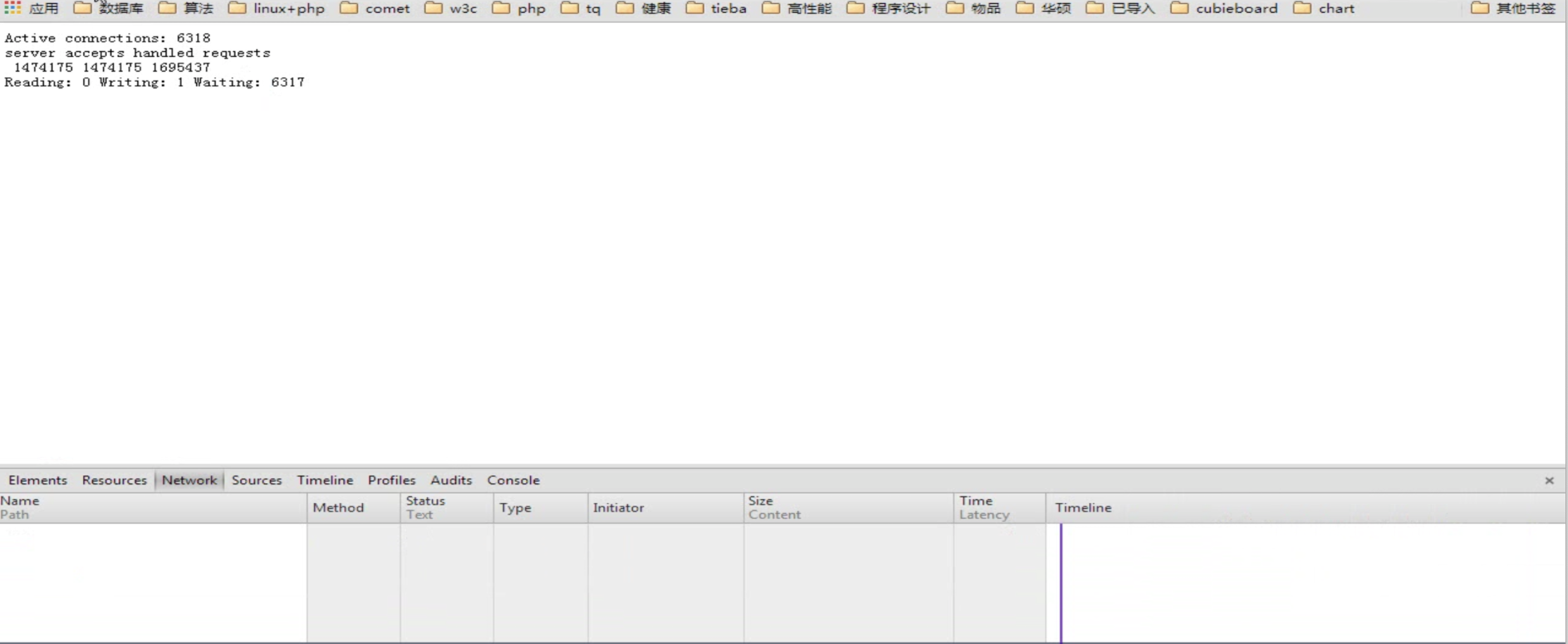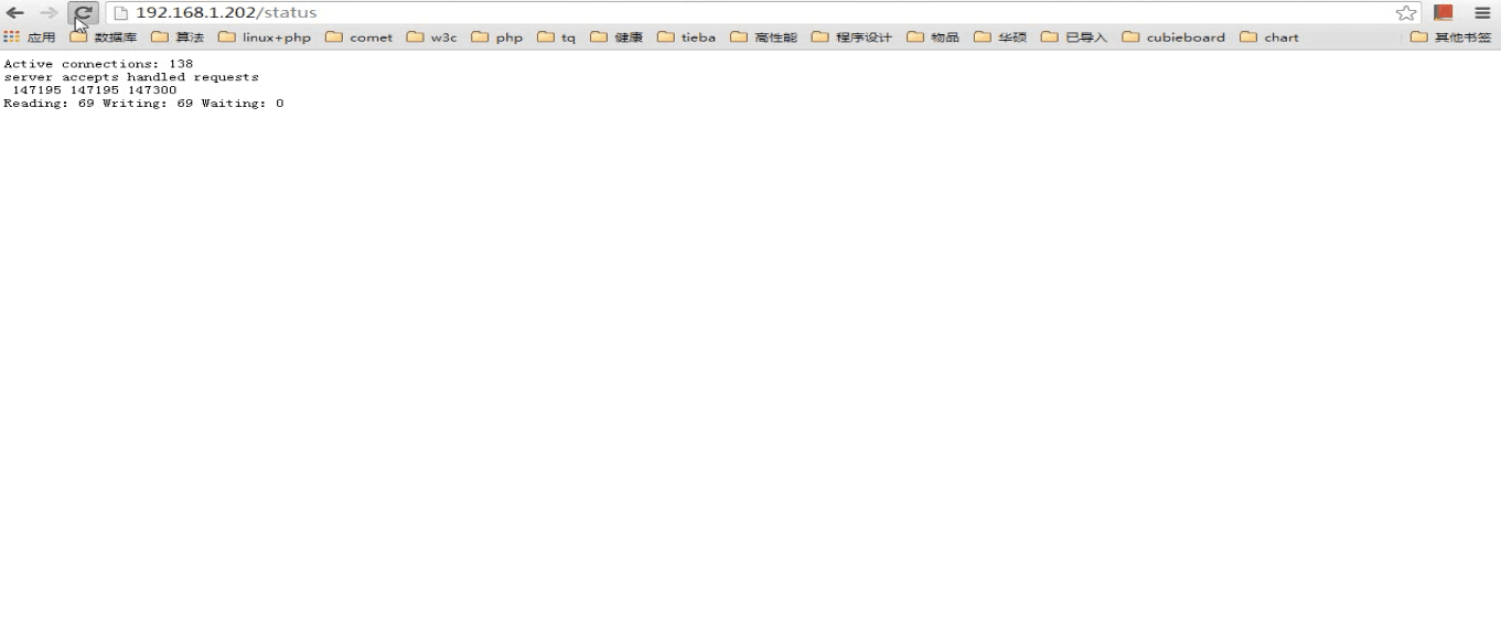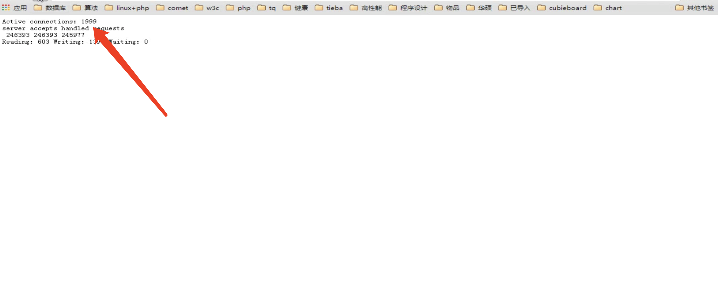 通过页面status发现是2000左右并发,因为ab客户端也需要设置最大连接数,nginx端没什么问题,已经配置过了,可是ab客户端没有设置,可累坏了,客户端没有那么强。