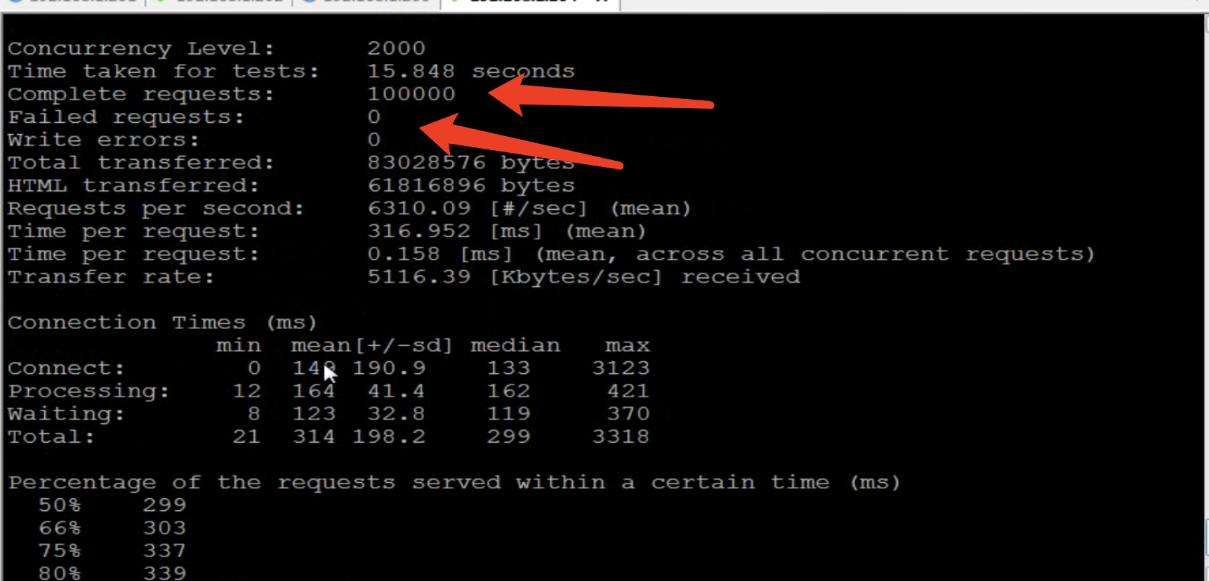 最后还是只有一两千,本来应该上万的,但是没有失败的,而且百分之八十都在200ms之内完成。