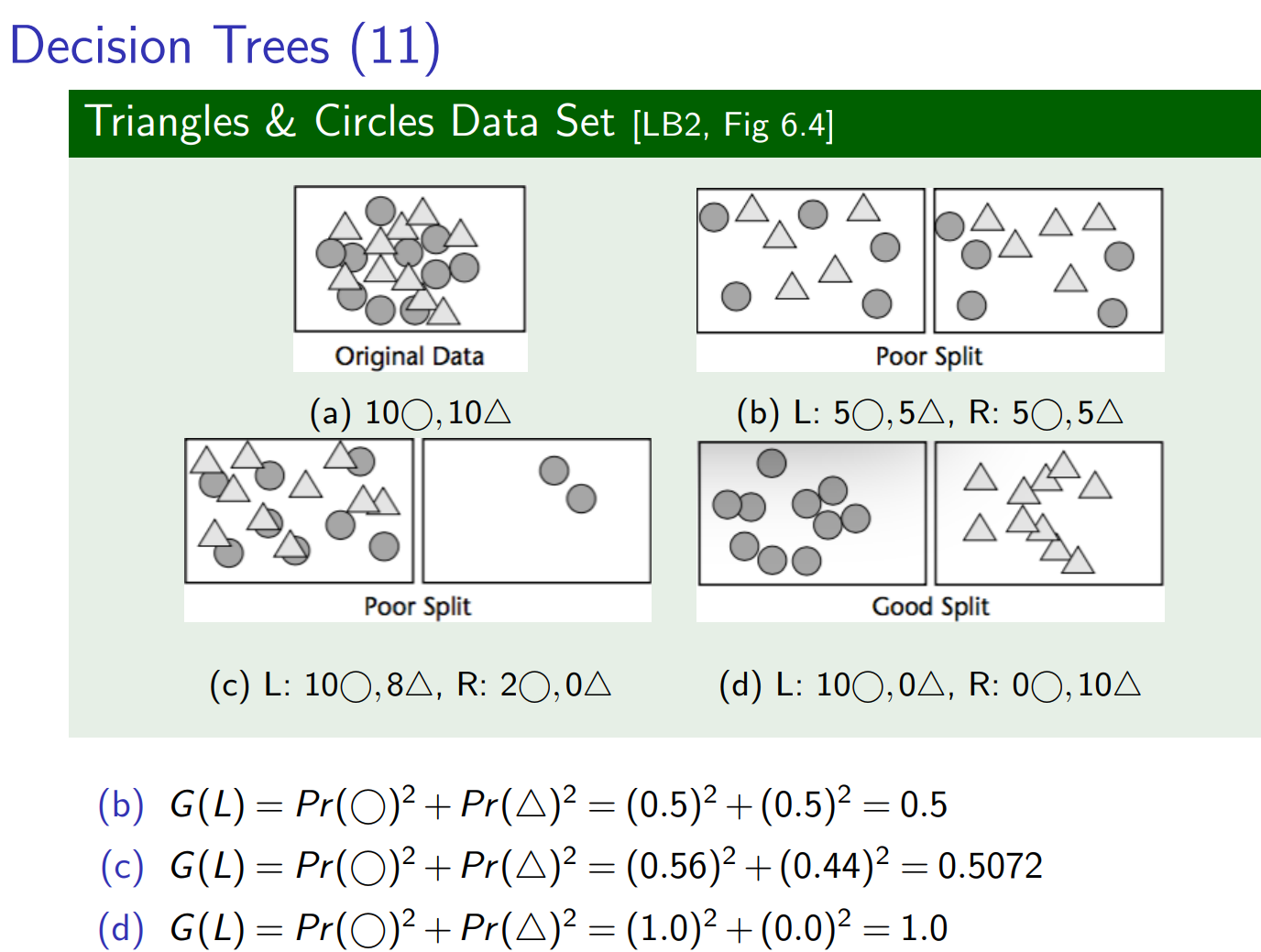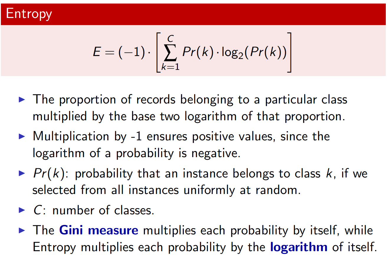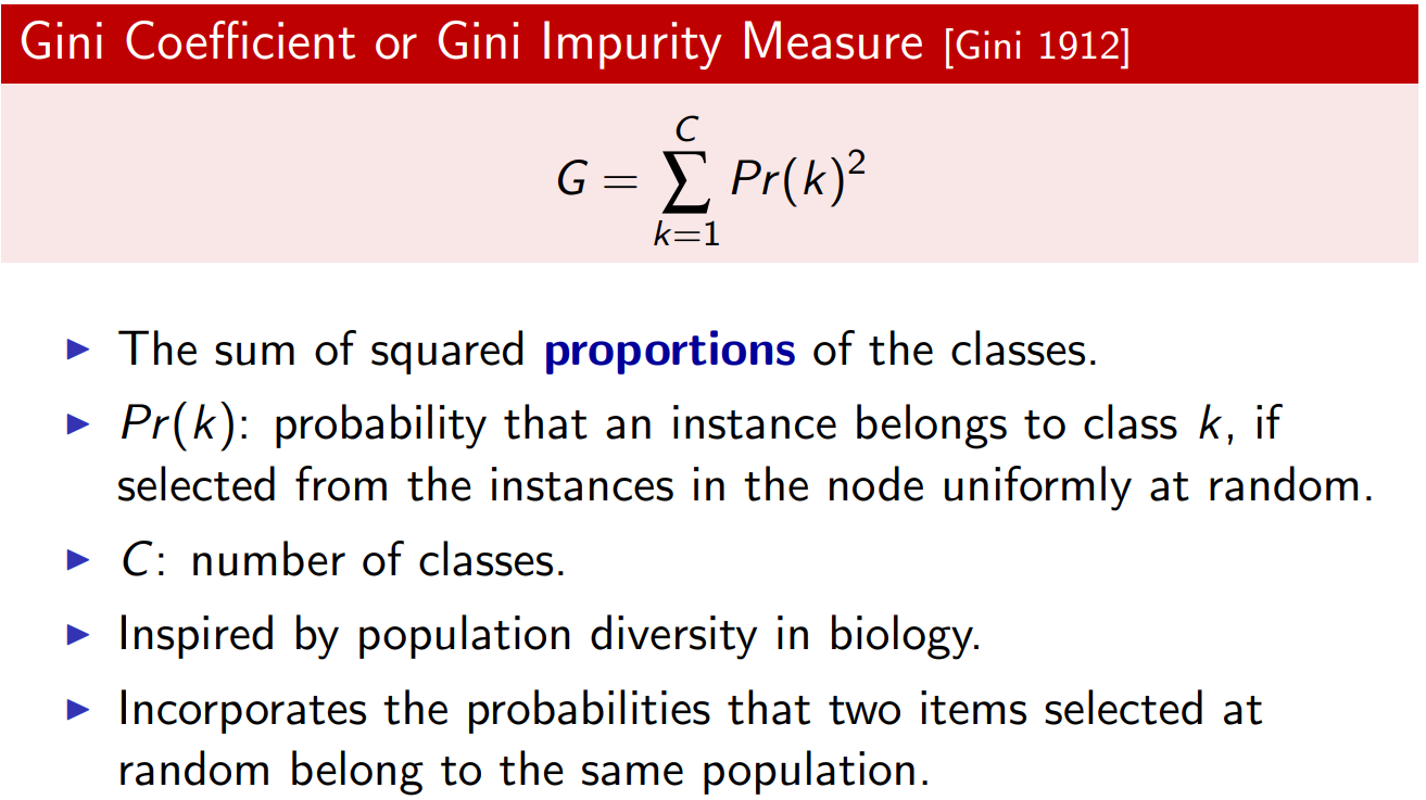 有不同的衡量purity的方法,不同的衡量方法会导致不同的分裂。