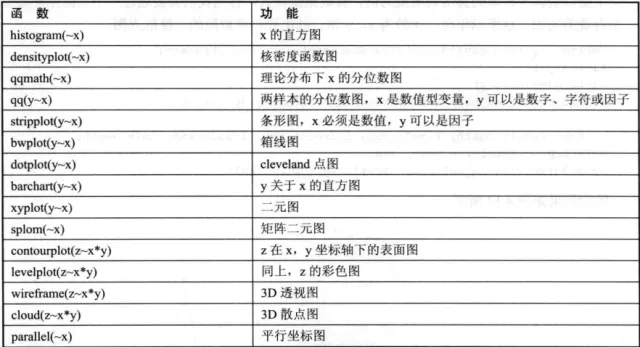 lattice适用于多个变量的数据集绘图,其中的大部分函数是以一个公式作为主要的自变量.