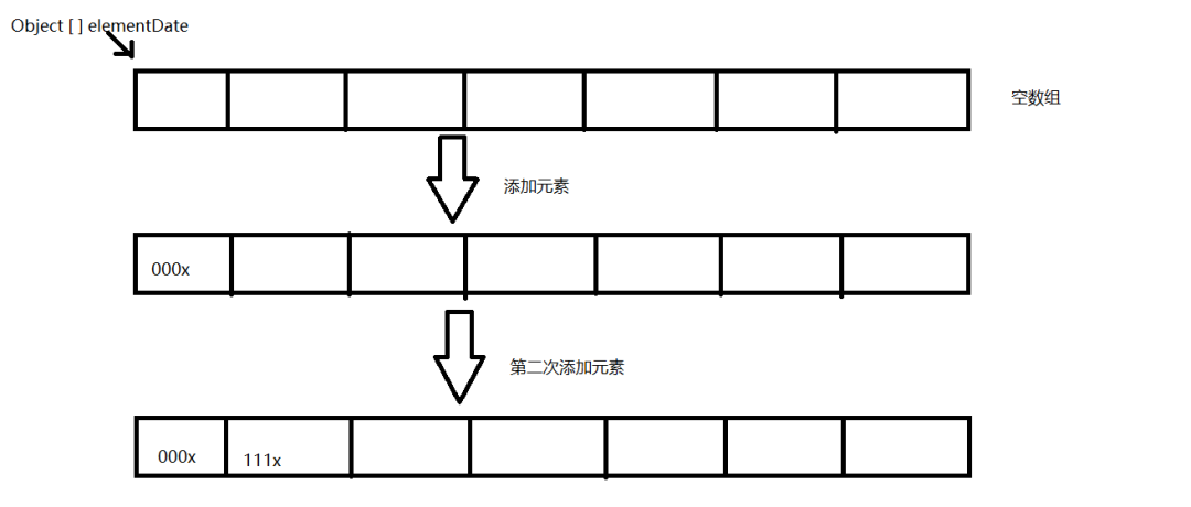 这个图可能不是很正确,里面存放的元素的引用,所以我用了个000x,大致了解一下就行,一个伪图。