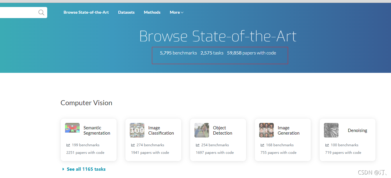 paperwithcode 网站将 ArXiv 上的最新机器学习论文与 GitHub 上的代码(TensorFlow/PyTorch/MXNet /等)对应起来。据网站开发者介绍,59858篇论文(带源码)、5151个数据集,且在不断的更新中。paperwithcode 网站广泛涉及了各类机器学习任务,包括计算机视觉、自然语言处理等