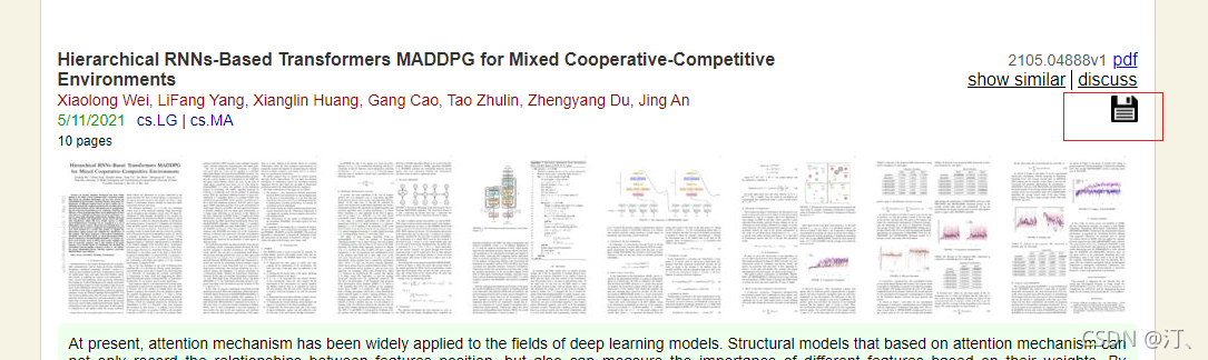 首先,arxiv-sanity在展示最新更新的文献时,提供了可读性更强的缩略图预览模式方便读者来快速预览,并在缩略图下方的绿色区域显示文献的abstract 。