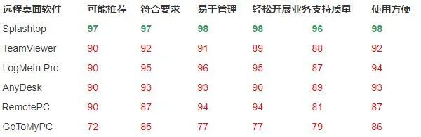 在一份分析用户对 30 多种远程桌面解决方案的评论的报告中,Splashtop 的 NPS 得分以93分荣获第一;“用户可能推荐的得分”最高,并且在其他几个客户满意度类别中均排名第一。