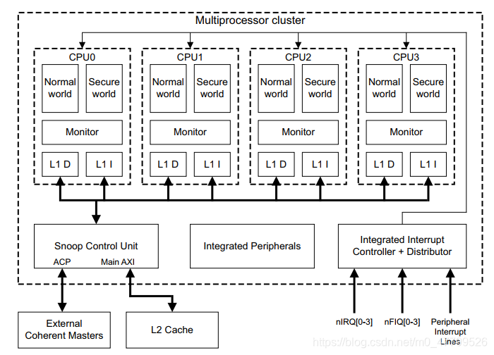 另外:cache和内存为了支持trustzone安全策略,需要做些扩展。